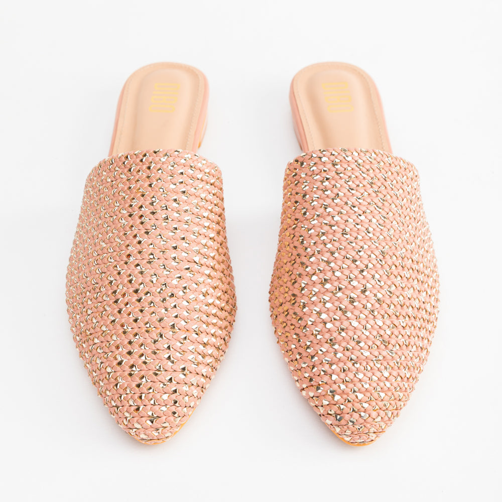 NUDE PINK FABRIC CLOSE TOE FLATS