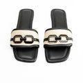Step into effortless style and comfort with these chic Black and Beige Flats from DIBO. Featuring a classic self-design and a stylish metallic buckle, these slides are the perfect blend of elegance and modern flair.