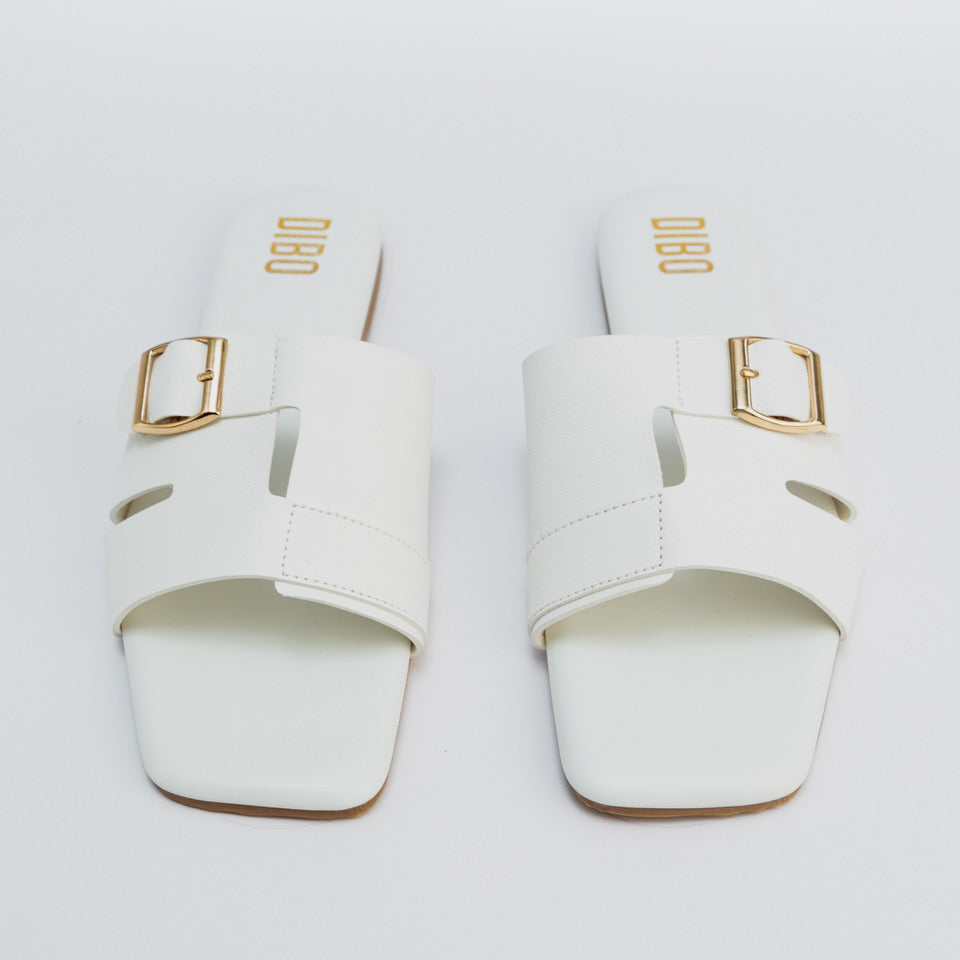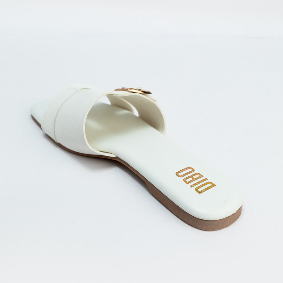 OYSTER WHITE FLATS WITH GOLD BUCKLE