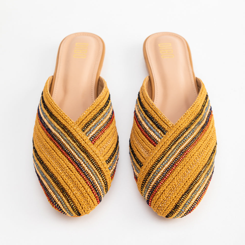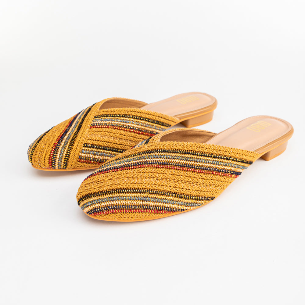 MUSTARD YELLOW LACE CLOSE TOE FLATS