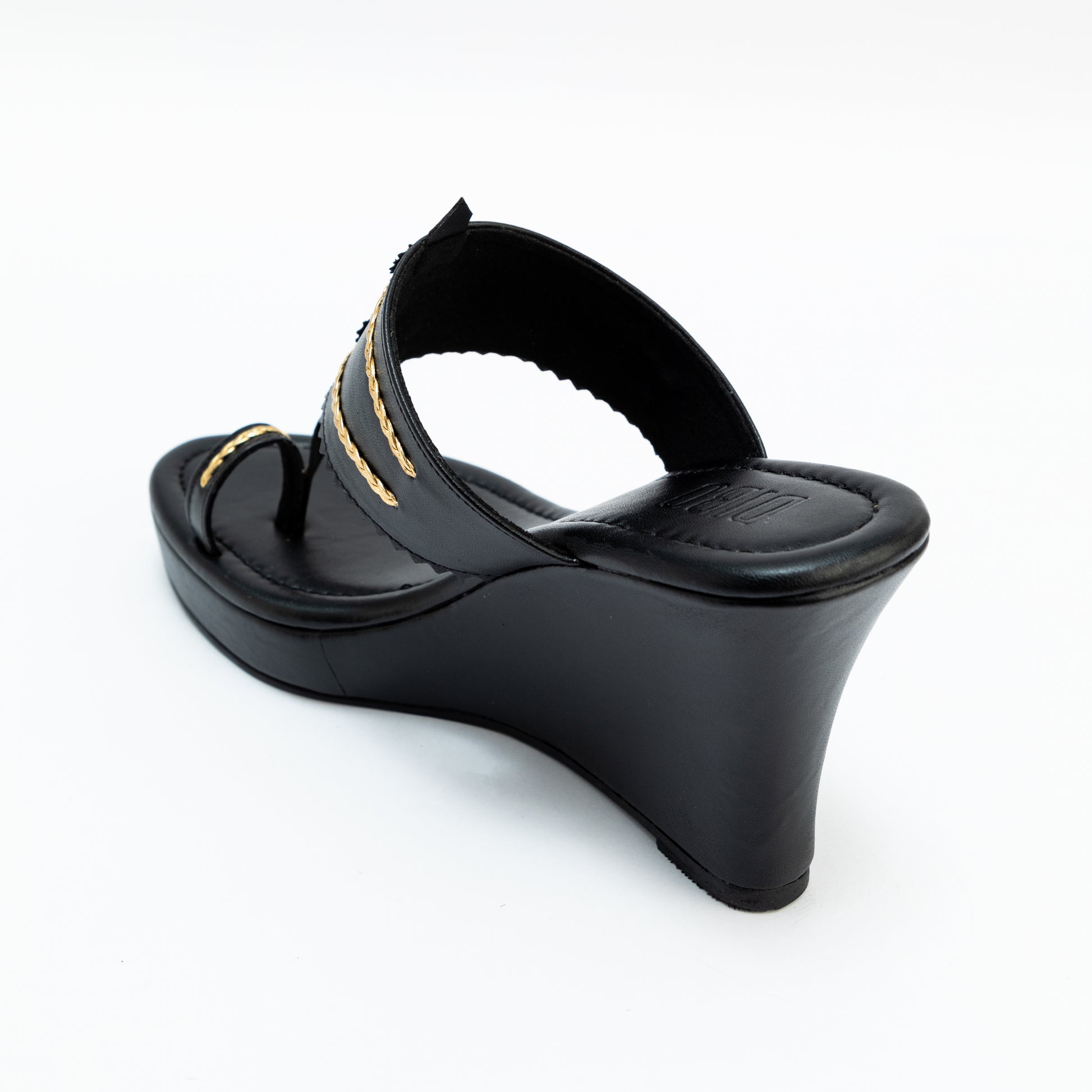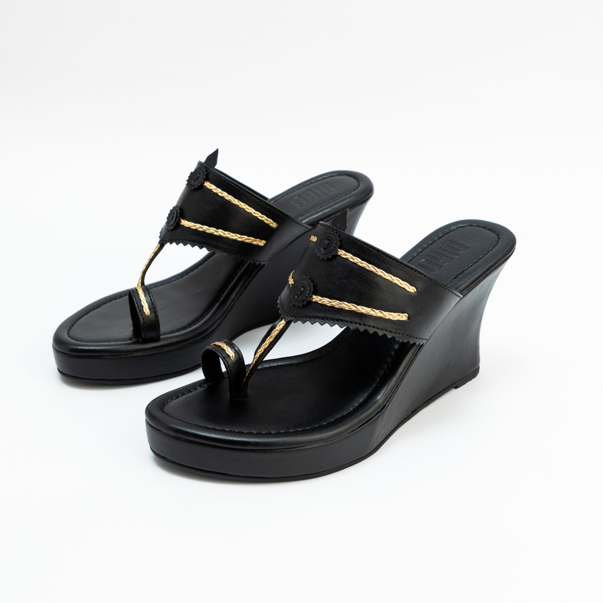 MIDNIGHT BLACK KOLHAPURI WEDGES