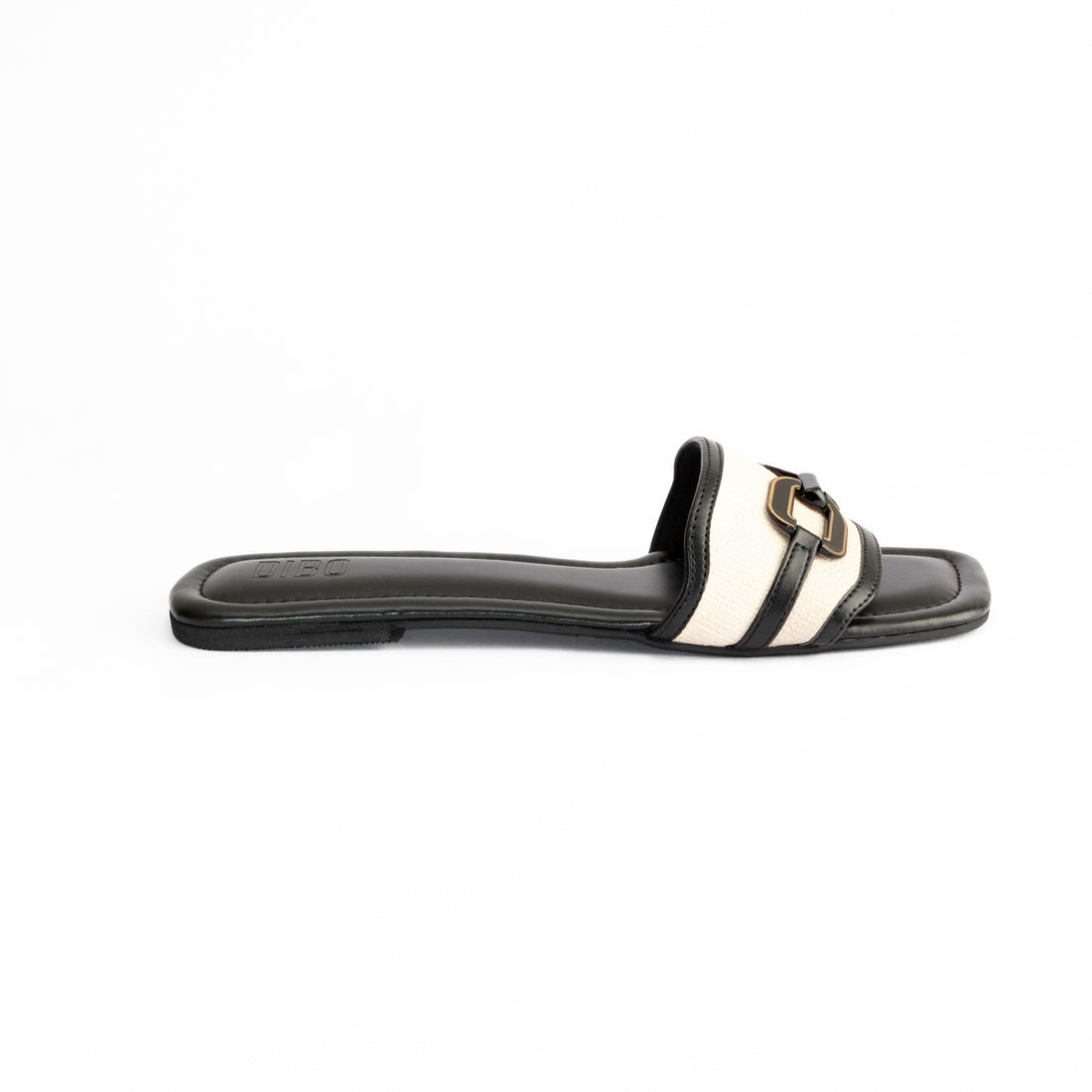 BLACK AND BEIGE FLATS WITH BUCKLE