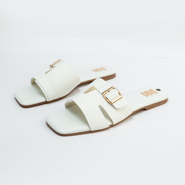 WHITE CUSHION FLATS WITH GOLD BUCKLE
