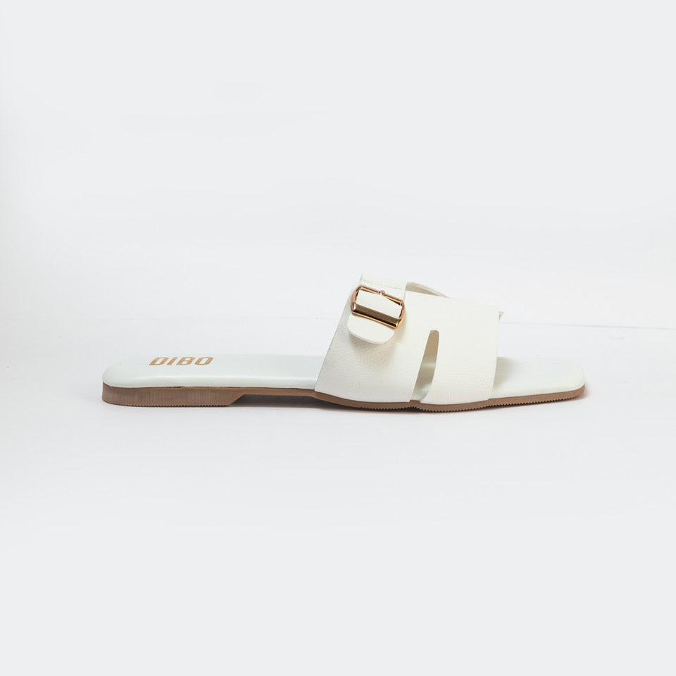 OYSTER WHITE FLATS WITH GOLD BUCKLE