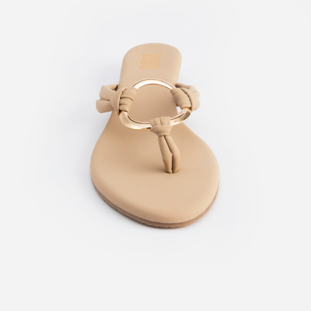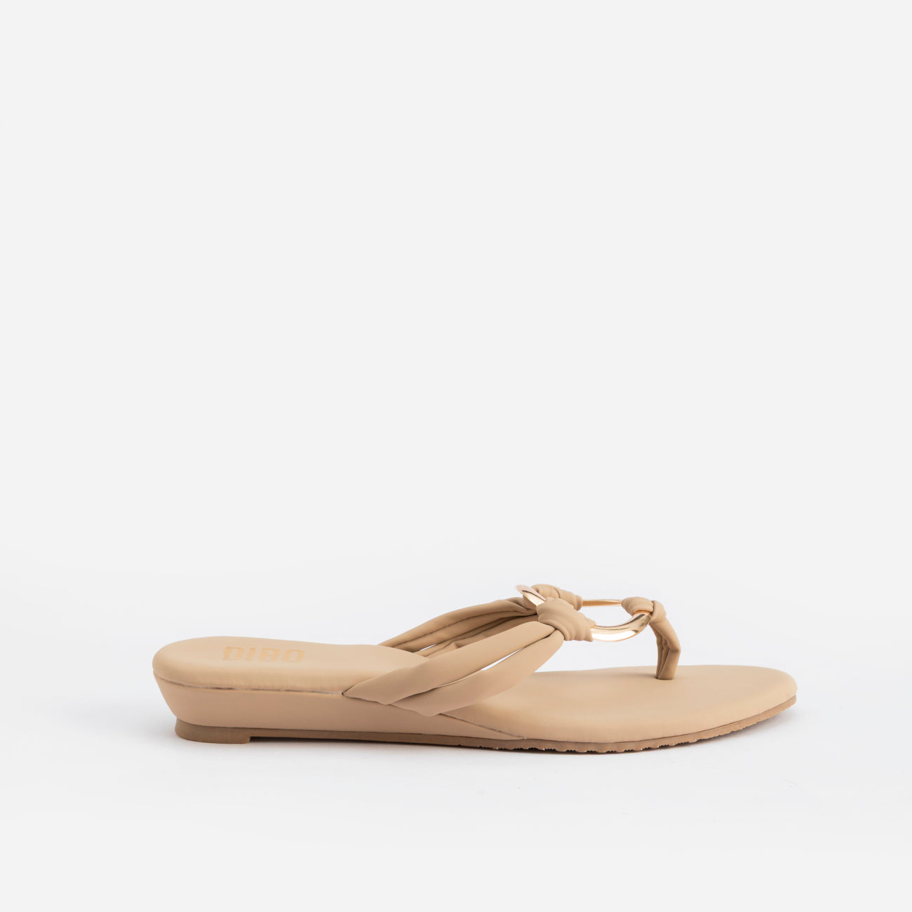 BEIGE WEDGES WITH GOLD ROUND BUCKLE