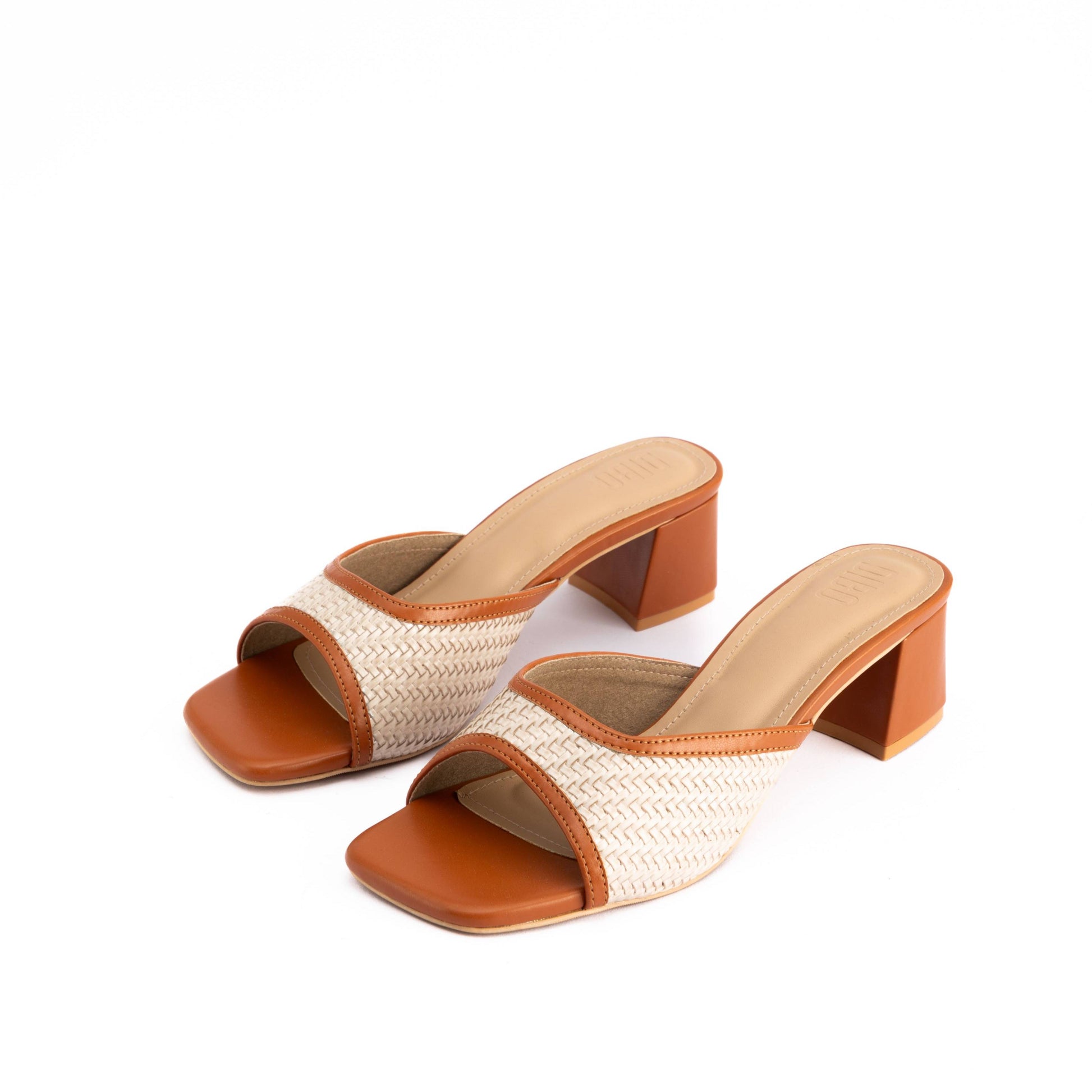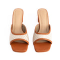 BEIGE WITH BROWN PIPING COMFORT BLOCK HEELS