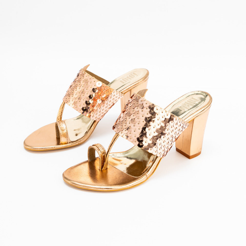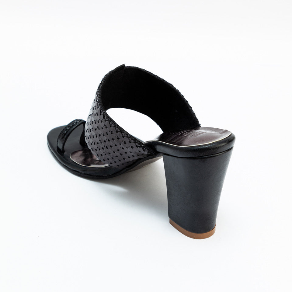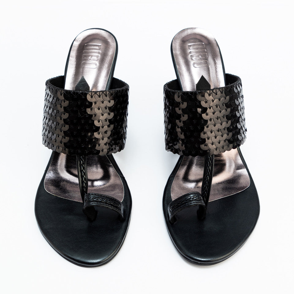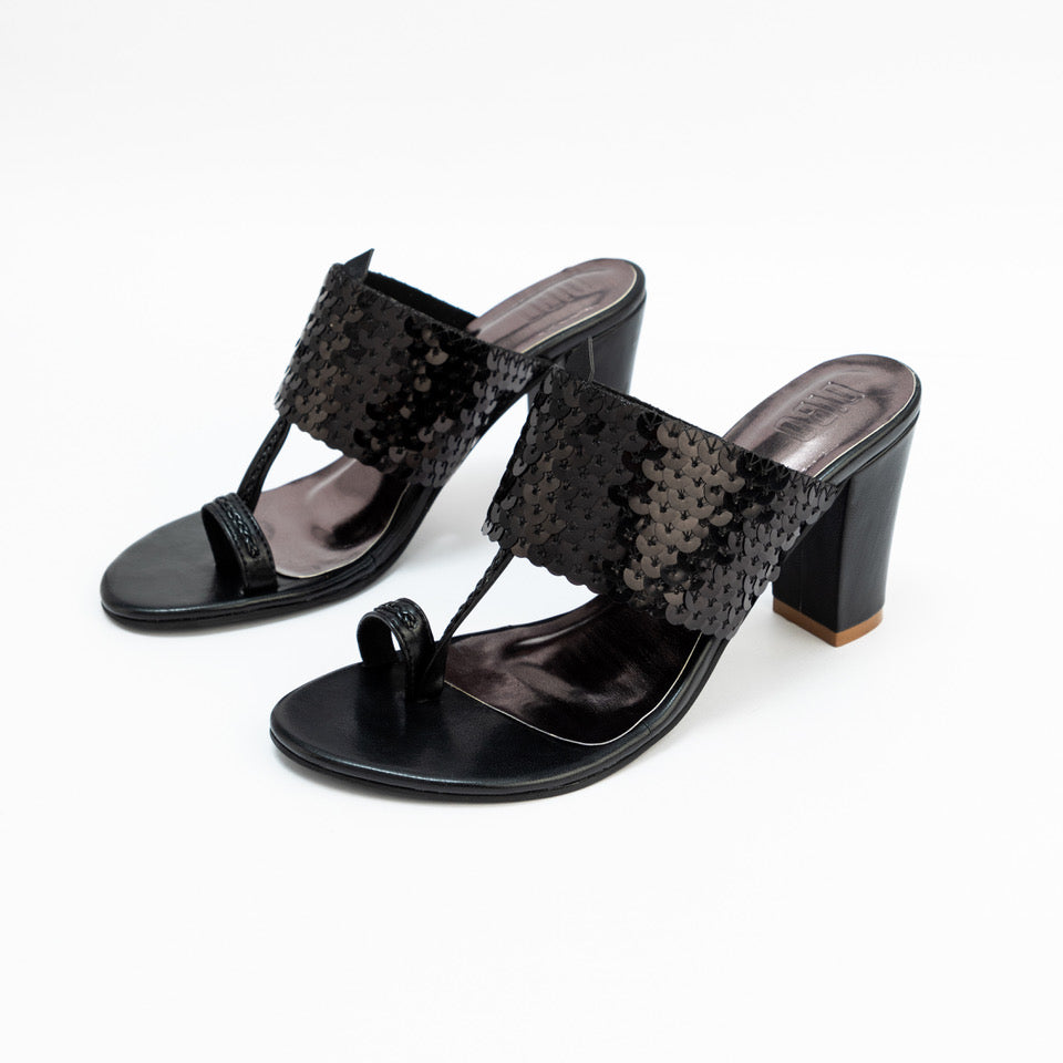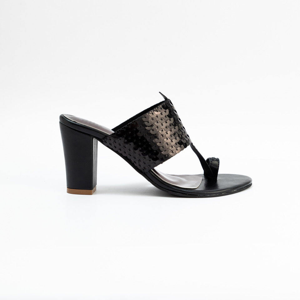 BLACK SEQUENCE STRAP BLOCK HEELS