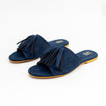 PRUSSIAN BLUE TASSEL DETAIL SUEDE FLATS
