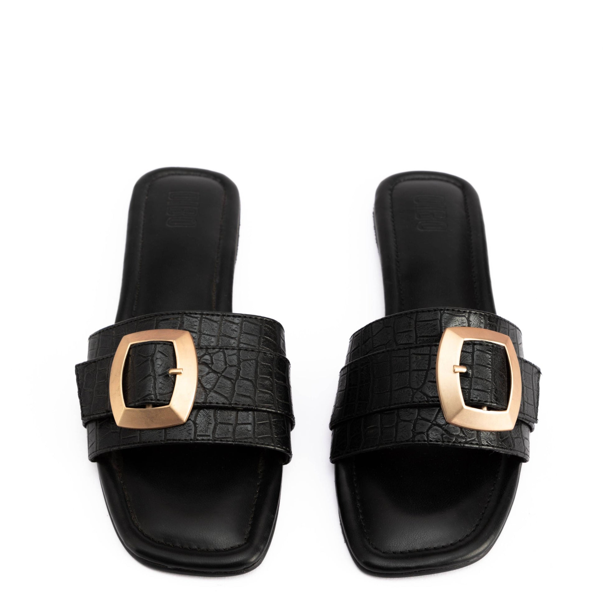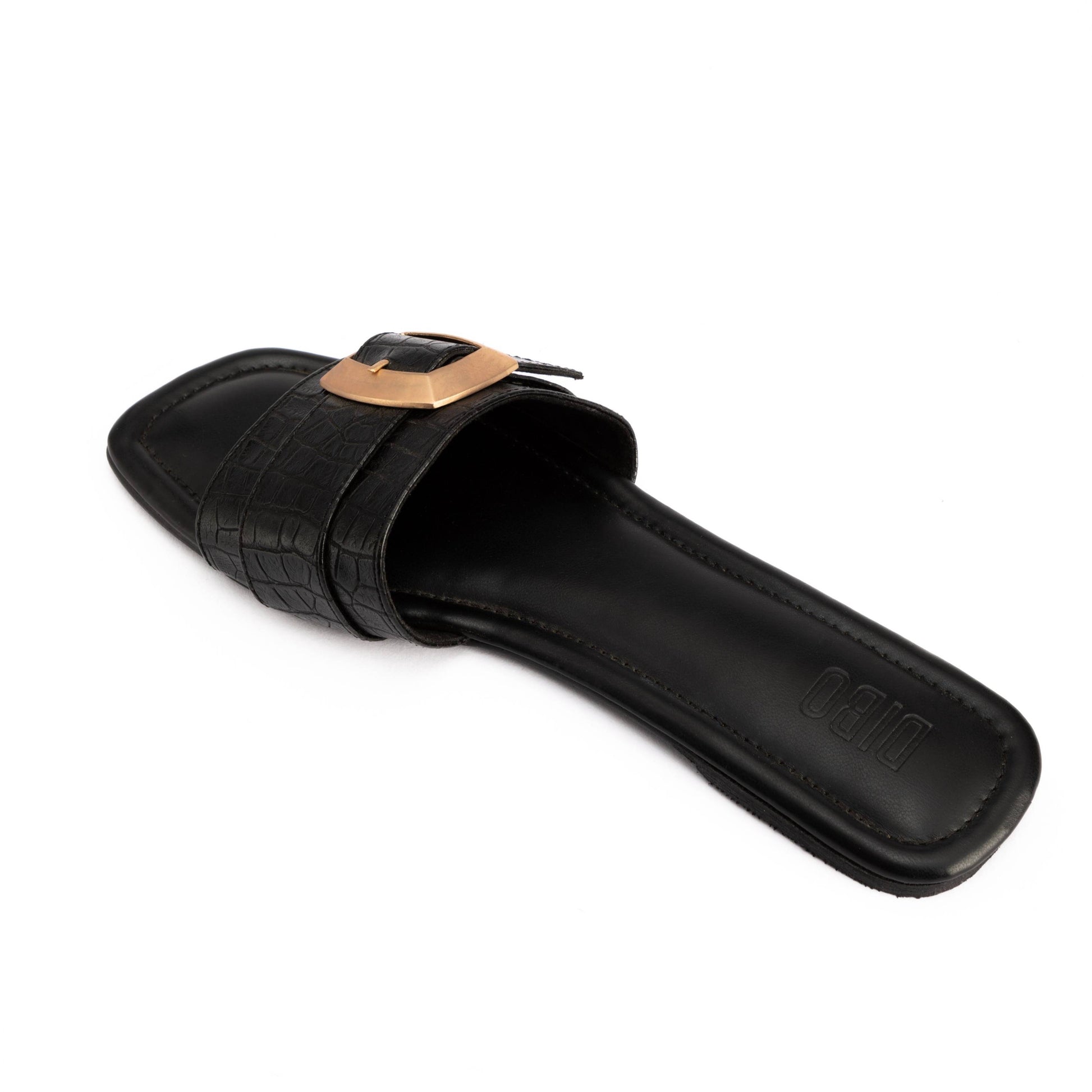 Turn heads with every step in the Jet Black Flats with Gold Buckle from DIBO — a classic blend of elegance and edge. These flats offer a luxurious look with their rich croc-textured strap and oversized gold buckle, designed to elevate even the simplest outfit.